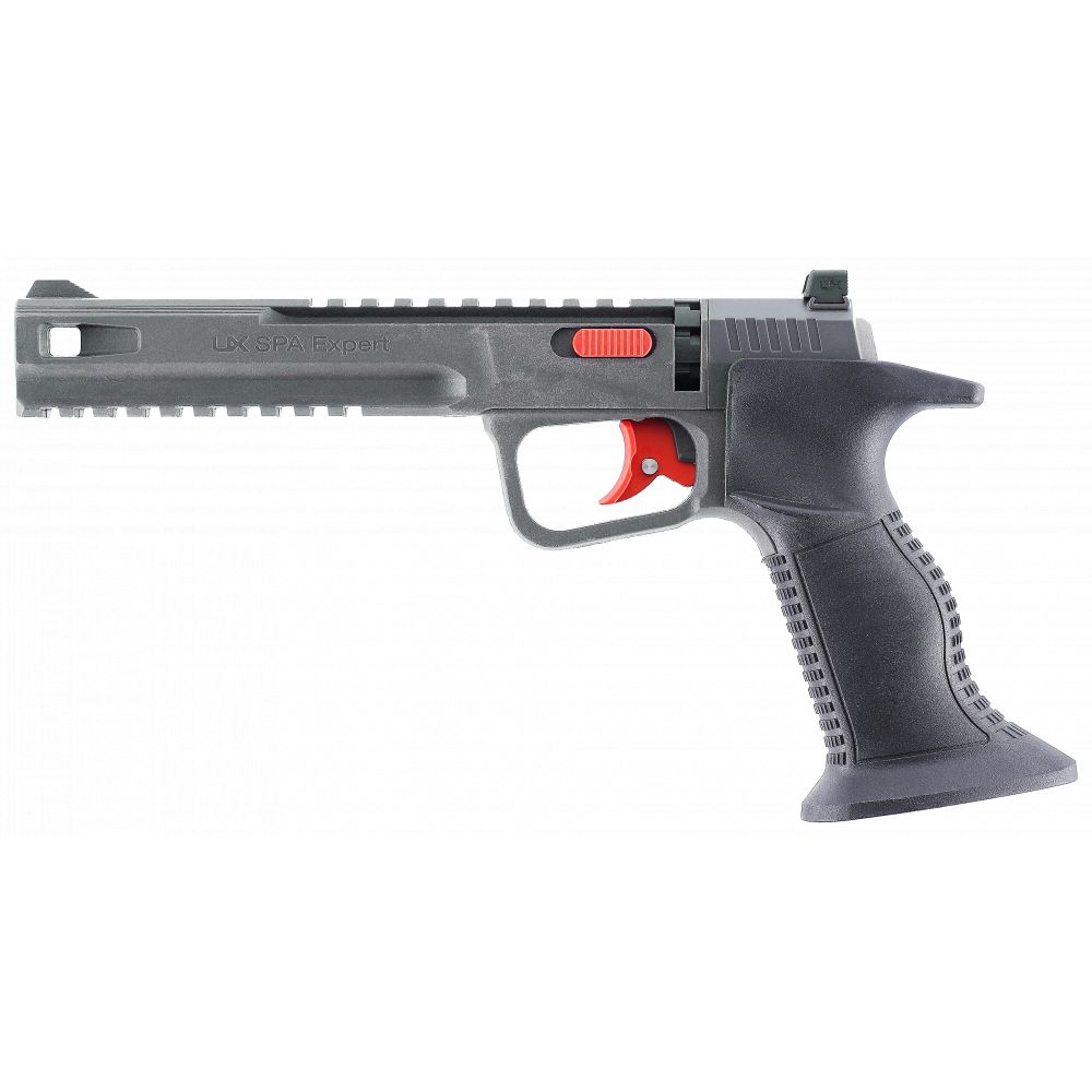 Puissance (en Joules): < 3,0 Détente: Double Action Poids (en g): 530 Longueur en mm (pouces): 320 Moyenne de tirs par cartouche de Co2: 50 Descriptif: Modèle haut de gamme de la série SPA, ce pistolet est alimenté au CO2 avec une capsule de 12g dans la poignée et un chargeur rotatif 8 coups. Son canon rayé de 190mm et son énergie inférieure à 3 joules garantissent une précision constante. La conception ergonomique s’inspire des pistolets de compétition, avec une ligne de visée allongée, une gâchette rouge en double action et une surface de prise texturée. Les rails Picatinny supérieur et inférieur permettent l’ajout d’accessoires et la sécurité manuelle prévient tout déclenchement accidentel. Livré avec 3 chargeurs.
